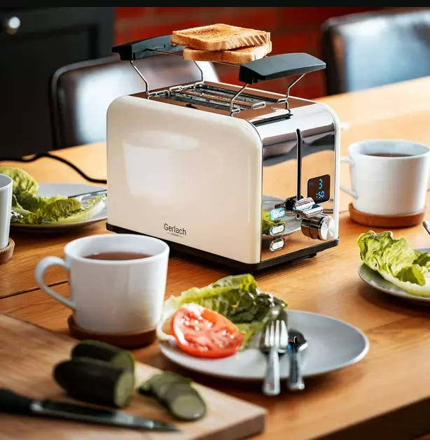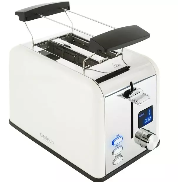 Бренд - GERLACH;Потужність - 1100 Вт;Кількість виробів - 2;Управління - Плавне регулювання;Функції та особливості - Автовідключення, Автоцентрірованіе, Дисплей, Захист від перегріву, Підігрів, Переривання приготування , Розморожування;Матеріал корпуса - Пластик / метал;Колір - Нержавіюча сталь, Кремовий;Кількість відділень тостера - 2;Споживана потужність - Більше 1000 Вт;Особливості - Решітка для підігріву булочок, Знімний піддон для збору крихт, Підсвічування кнопок;Ступенів обсмажування - 6;