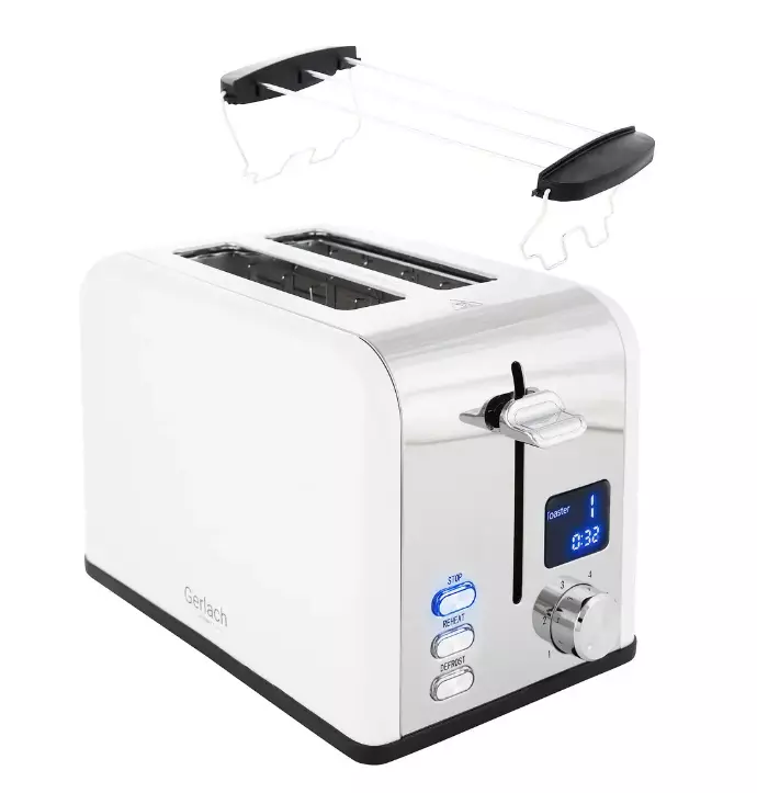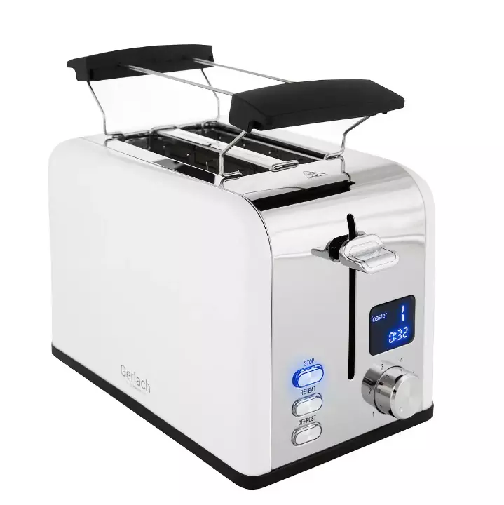 Бренд - GERLACH;Потужність - 1100 Вт;Кількість виробів - 2;Управління - Плавне регулювання;Функції та особливості - Автовідключення, Автоцентрірованіе, Дисплей, Захист від перегріву, Підігрів, Переривання приготування , Розморожування;Матеріал корпуса - Пластик / метал;Колір - Нержавіюча сталь, Білий ;Кількість відділень тостера - 2;Споживана потужність - Більше 1000 Вт;Особливості - Решітка для підігріву булочок, Знімний піддон для збору крихт, Підсвічування кнопок;Ступенів обсмажування - 6;
