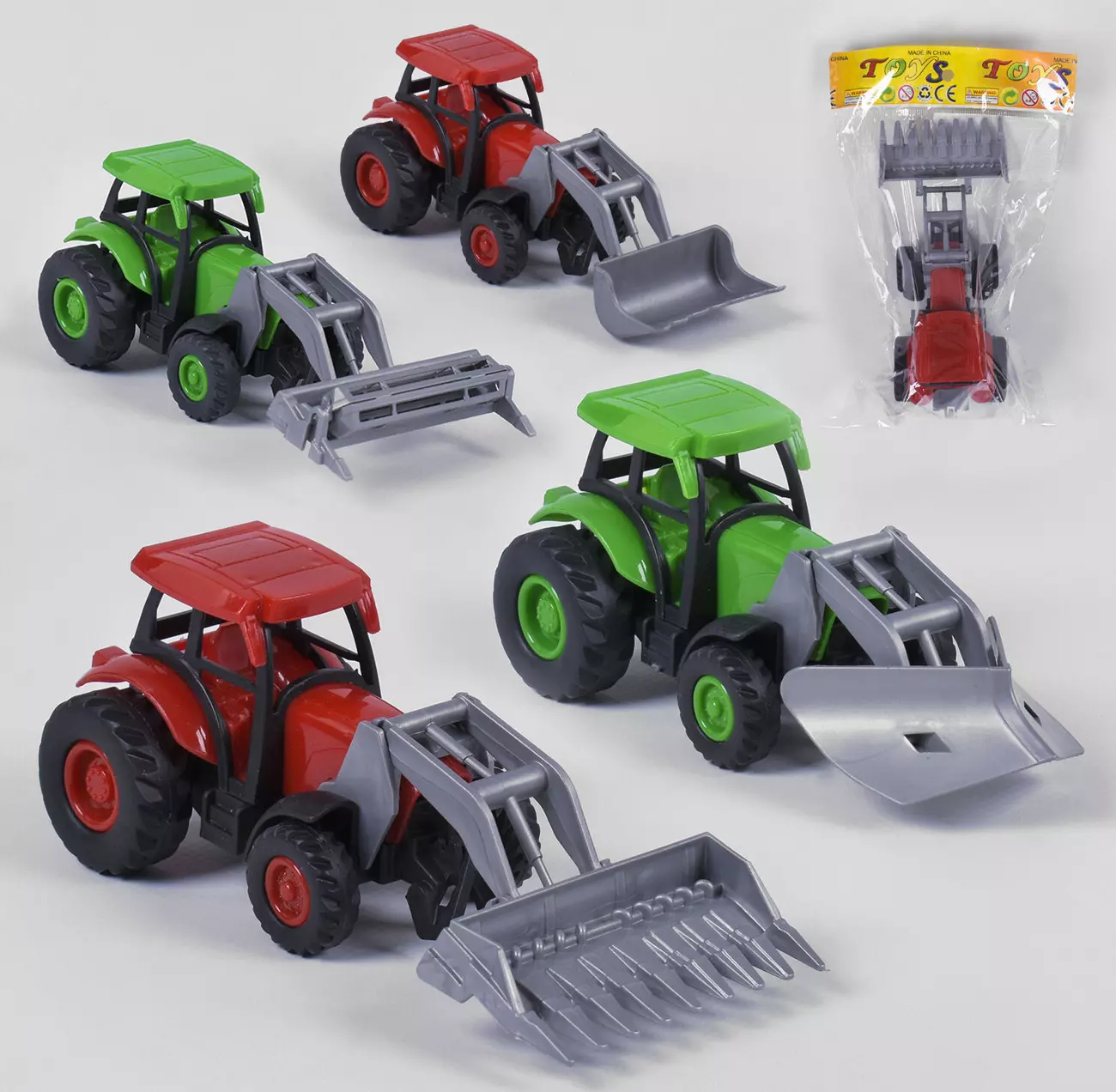 Трактор 850-2 - це чудовий подарунок для юного дослідника і любителя машин спеціального призначення. Невелика реалістична модель оснащена навісним обладнанням, причепом, колесами на інерційному механізмі і порожнім водійським сидіння. Модель представлена в 4х видах і різниться між собою типом навісного обладнання.