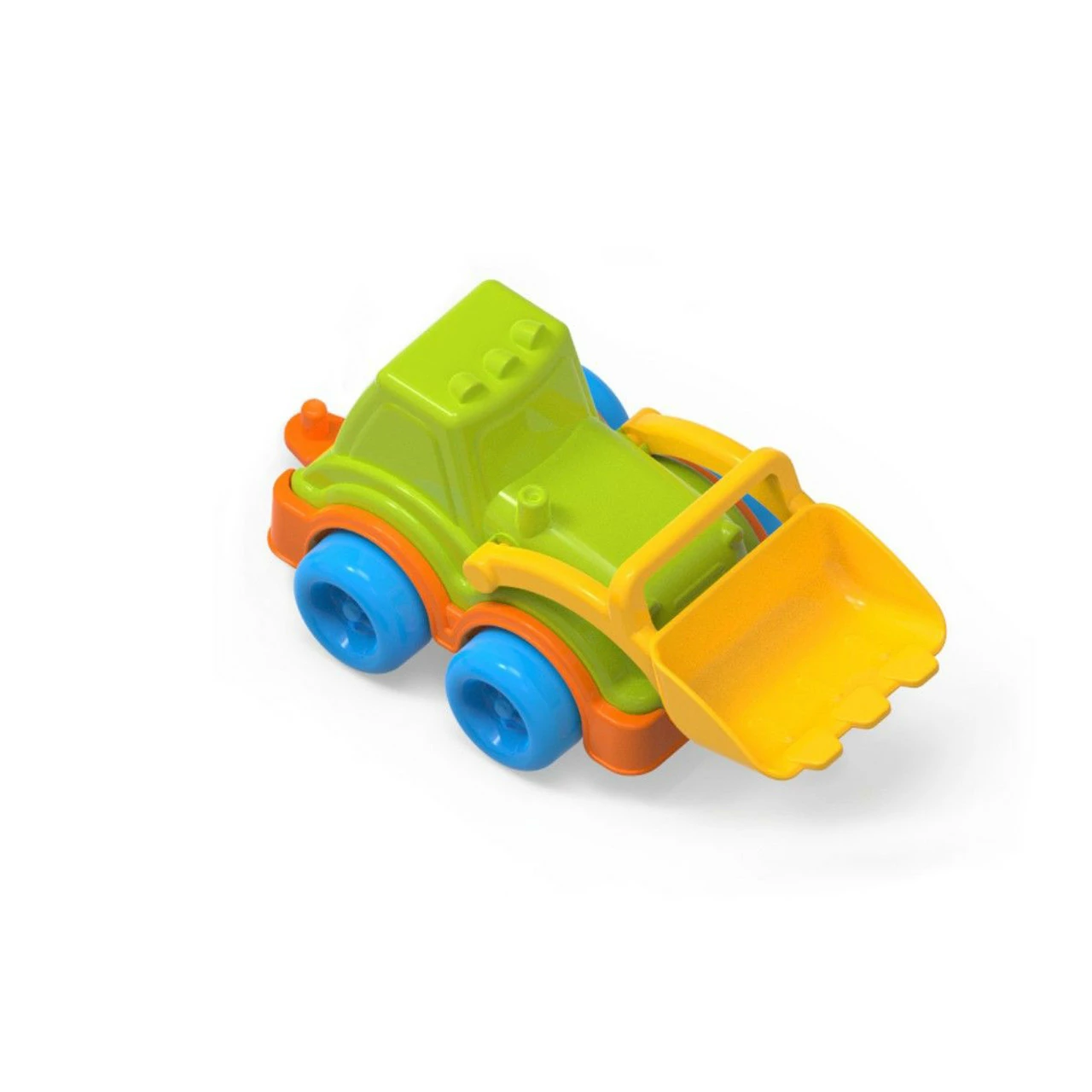 Маленький веселый трактор с ковшом впереди прекрасно подойдет для