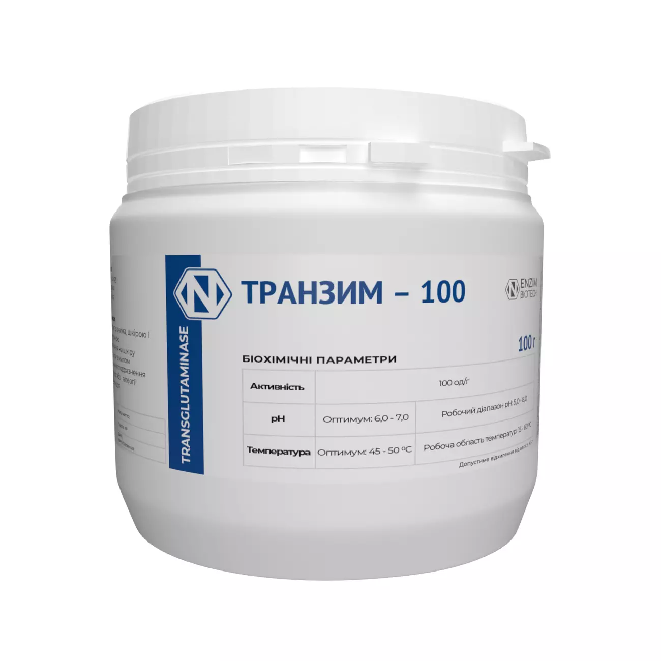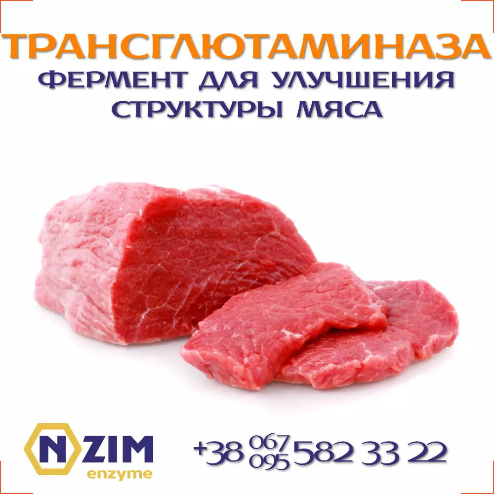 Трансглютаминаза ENZIM - органический катализатор химических реакций, связывает белковые молекулы, образуя новые связи между аминокислотами, тем самым стабилизируя структуру белка. Трансглютаминаза усиливает важные функционально-технологические характеристики протеинов, благодаря своей способности катализировать внутри- и межмолекулярное перекрёстное сшивание белковых молекул, что позитивно влияет на текстуру продукта.