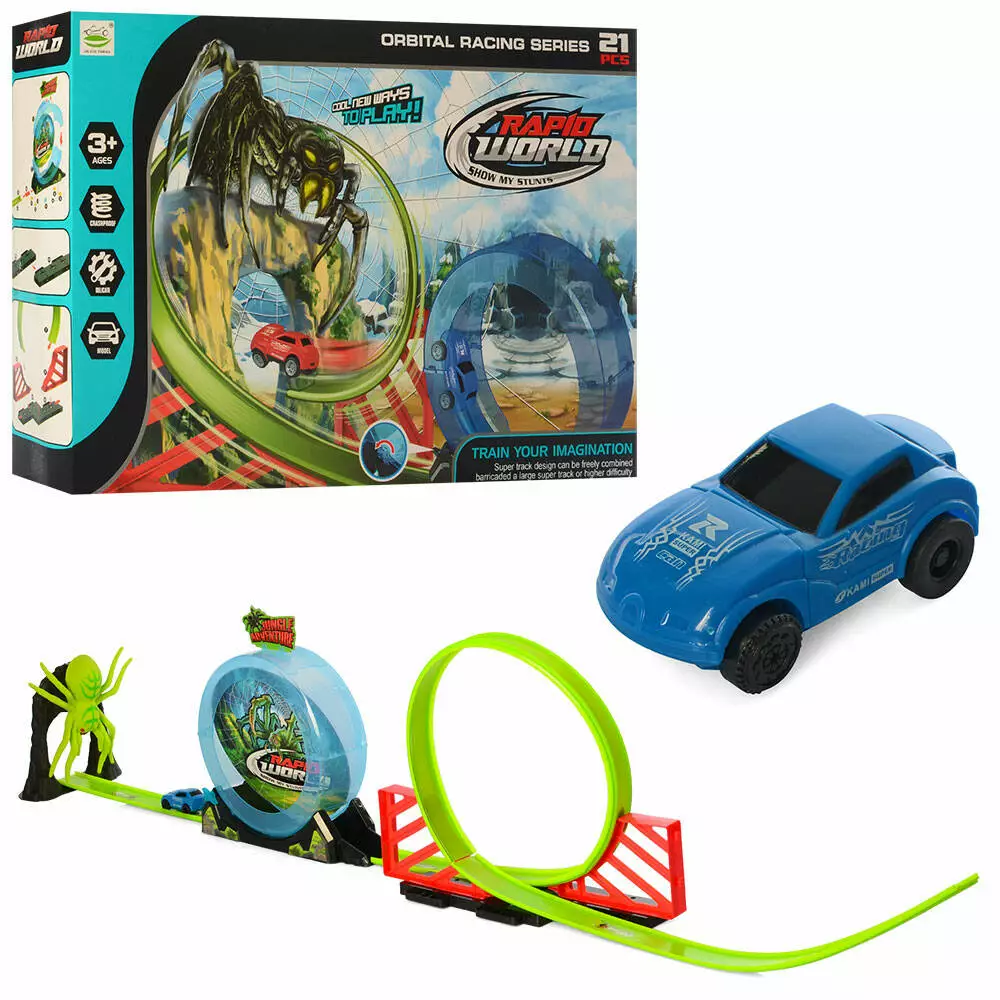 Фотография 1 товарной позиции интернет-магазина детских игрушек www.smarttoys.com.ua Трек 6688-291 павук, машинка-інерц., оберт 360, 21 дет., кор., 39-26,5-8 см.