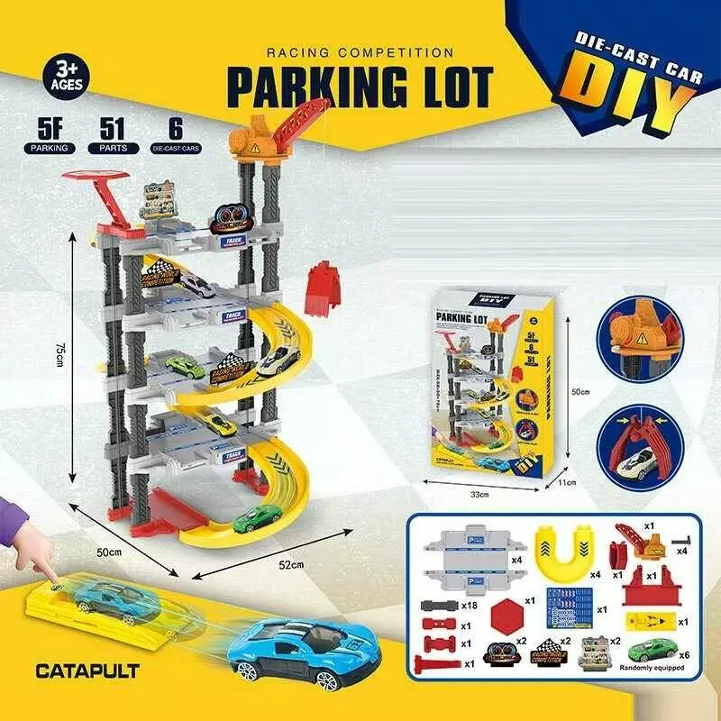 Трек 939-305 (24) парковка, 51 елемент, механічний підйомник, катапульта, 6 металопластикових машин, в коробці