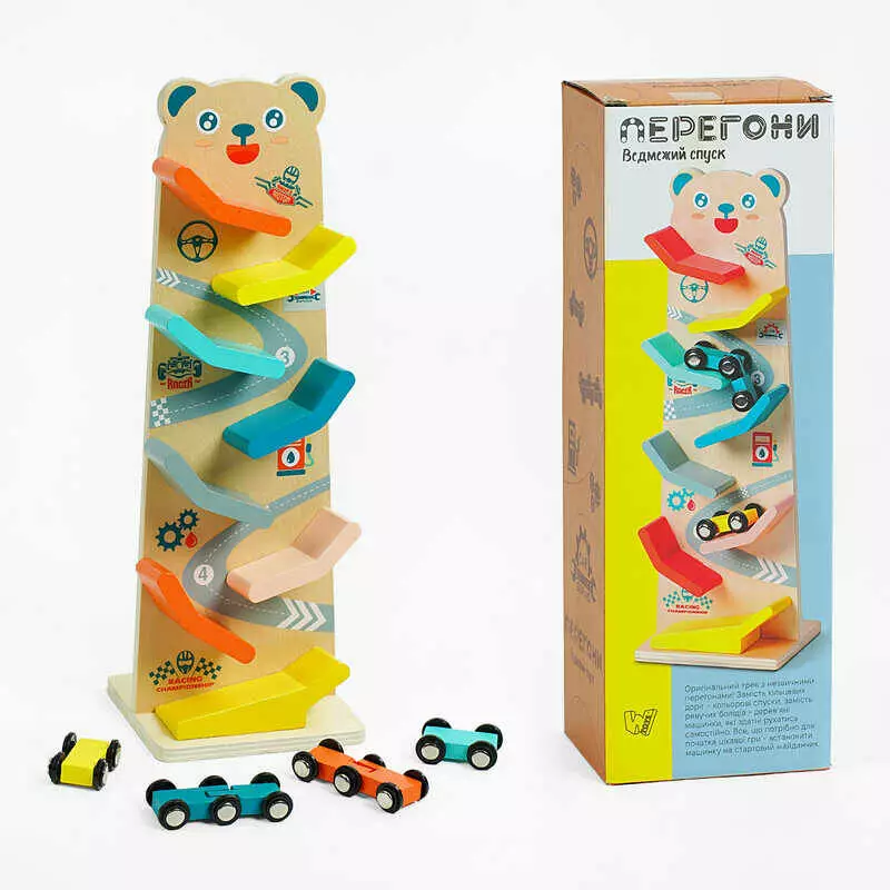 Трек C 61463 (24) "WToys", 8 спусків, 4 машинки, дерев’яний, в коробці