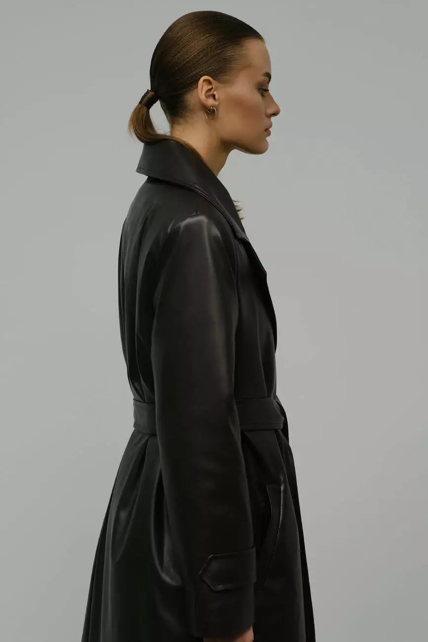 Базовий універсальний тренч з щільної екошкіри, який стане ідеальним верхнім шаром для образу на будь-який сезон. Адже його можна стильно поєднати як з буденним образом з кросівками та джинсами, так і з розкішним вечірнім під підбори.