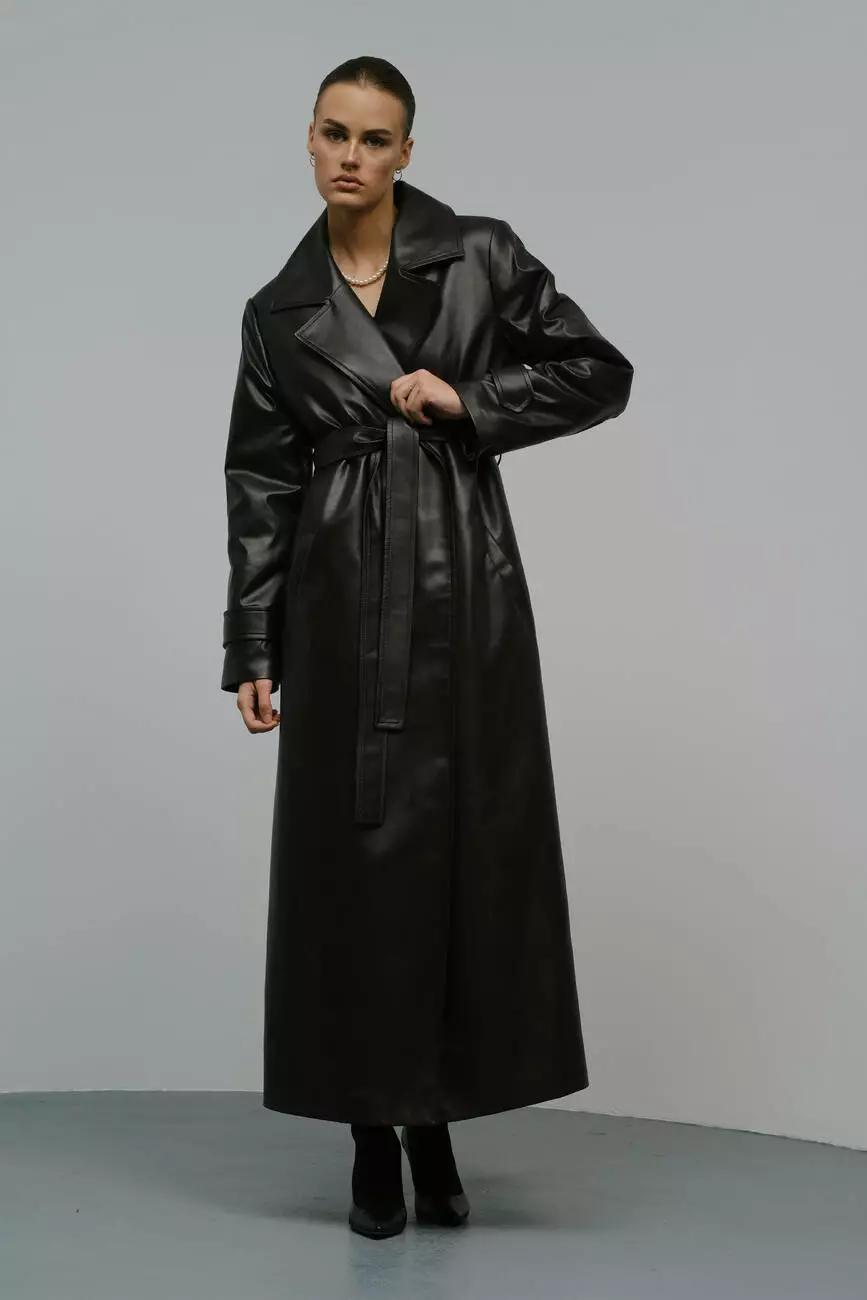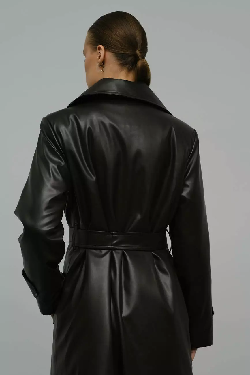 Базовий універсальний тренч з щільної екошкіри, який стане ідеальним верхнім шаром для образу на будь-який сезон. Адже його можна стильно поєднати як з буденним образом з кросівками та джинсами, так і з розкішним вечірнім під підбори.