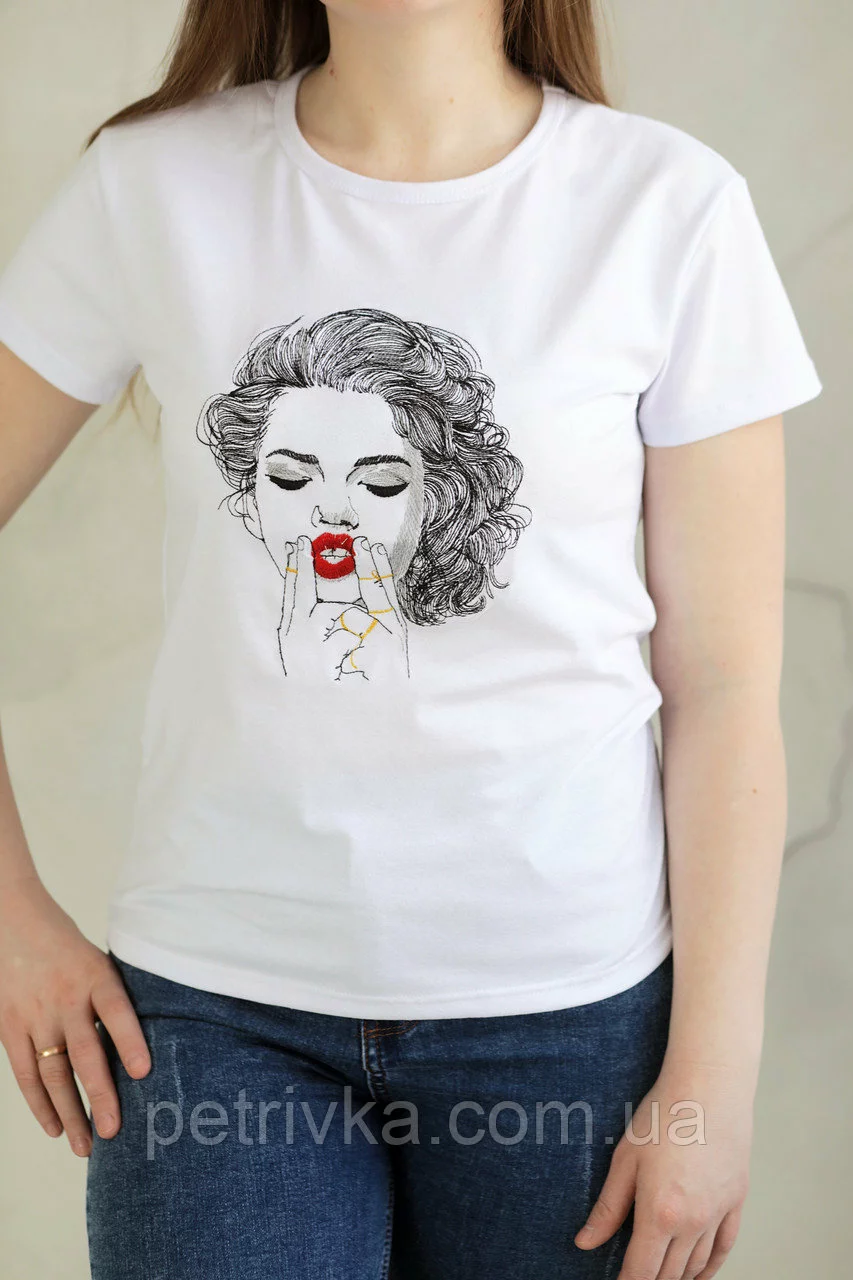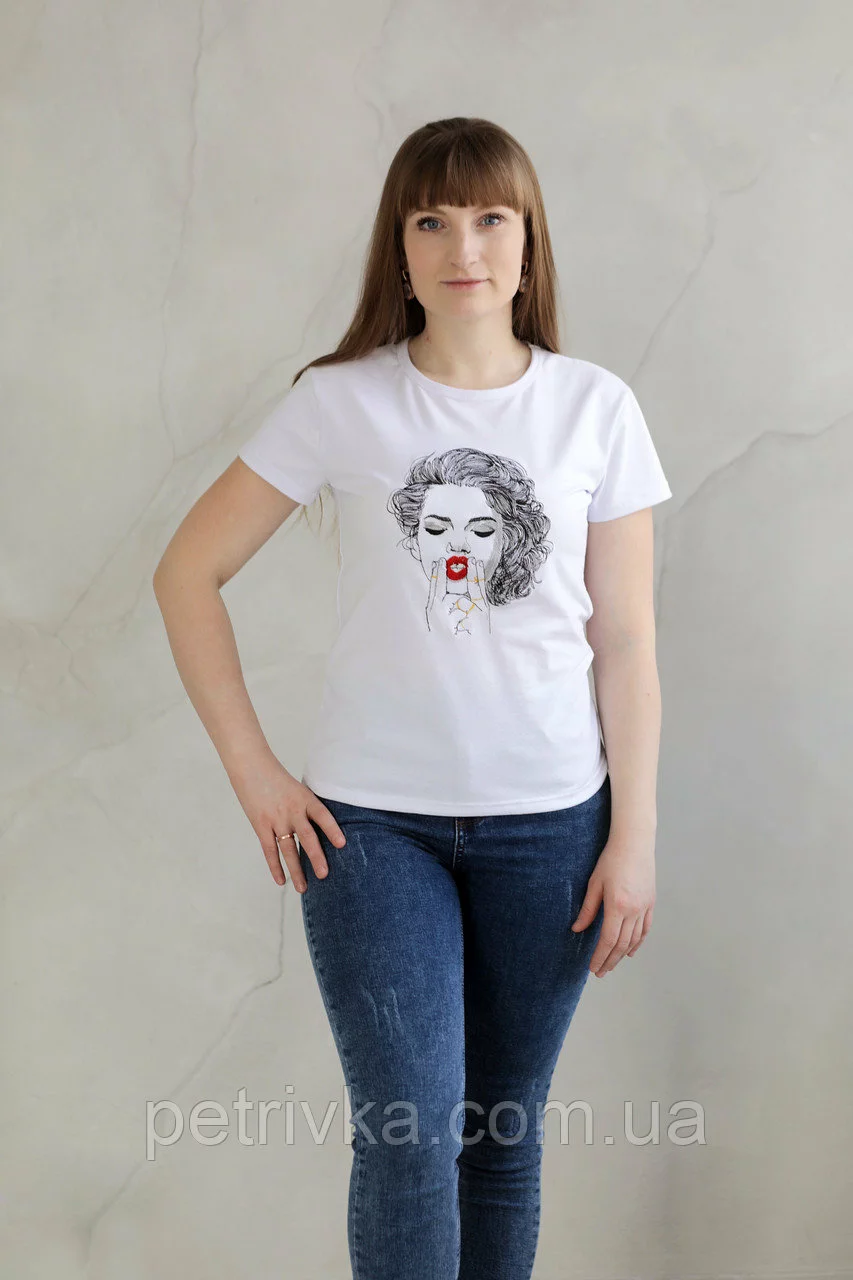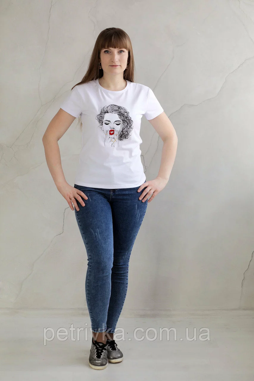 Жіноча біла футболка в стилі CASUAL, з вишитим принтом Дівчина