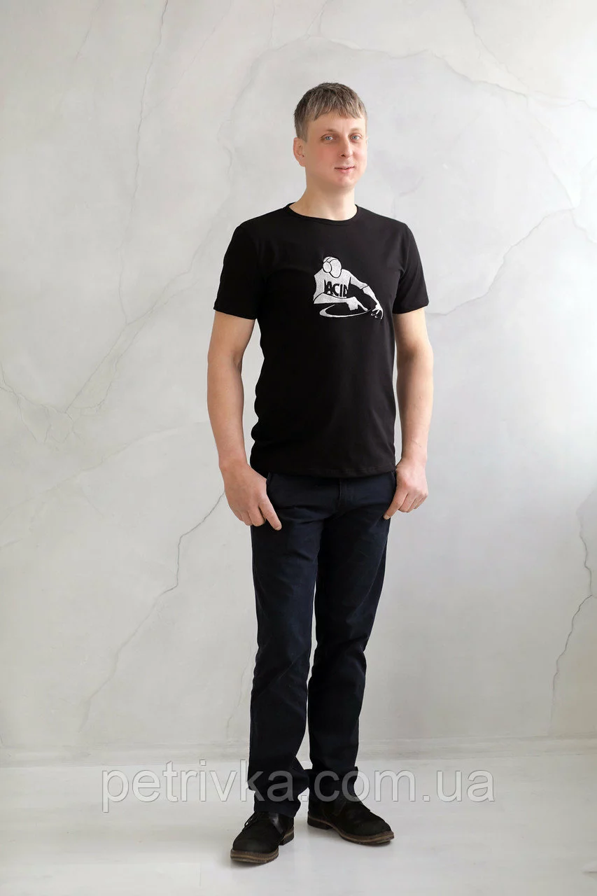 Чоловіча футболка чорна вишитим принтом Діджей, висока якість,