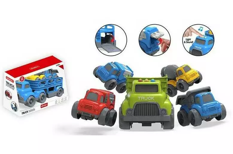 Трейлер 56001 (24) 6 видів, звук, підсвічування, 2 машинки спецтехніки, в коробці, ВИДАЄТЬСЯ МІКС