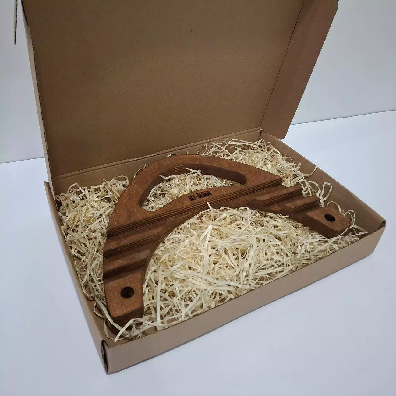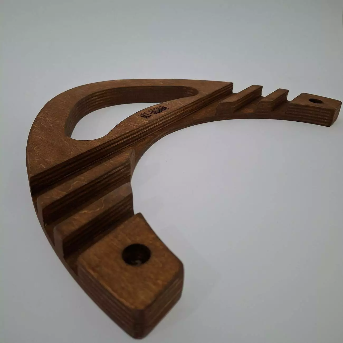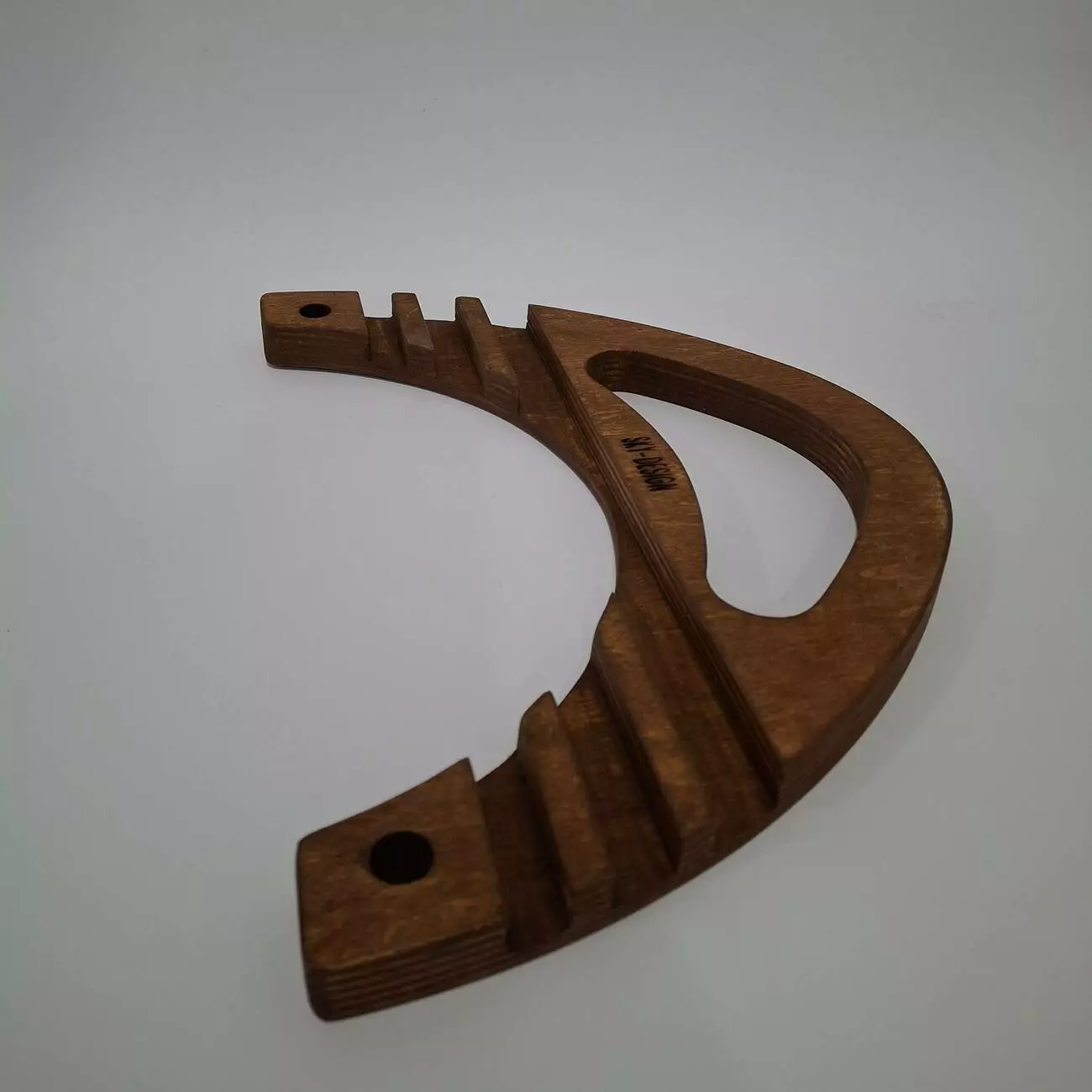 Тримач виконаний з натуральної вологостійкої фанери, товщиною 18мм. Має ергономічну форму, яка дозволить розташувати Ваш гаджет в будь-якому зручному положенні. Має декілька фіксуючих положень, дозволяє розміщувати планшет чи телефон під різним нахилом.