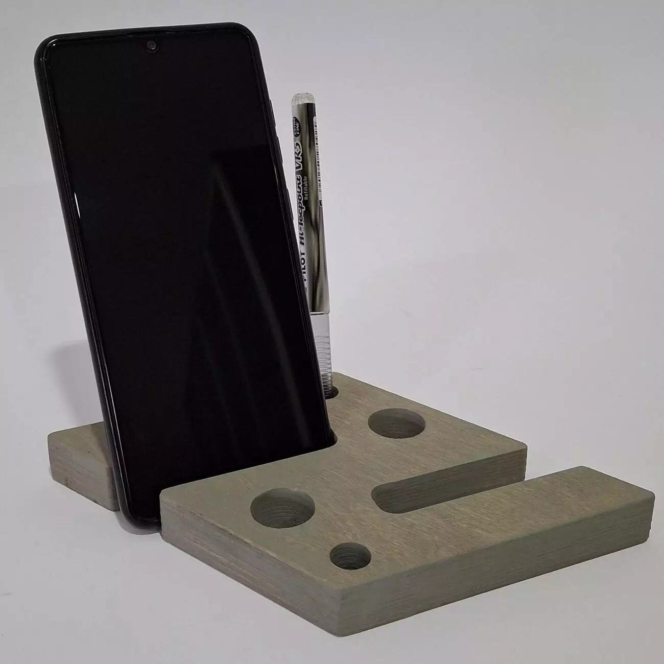 Тримач виконаний з натуральної вологостійкої фанери, товщиною 18мм. Має ергономічну форму, яка дозволить розташувати Ваш гаджет в будь-якому зручному положенні. Має декілька фіксуючих положень, дозволяє розміщувати телефон як горизонтально так і вертикально.