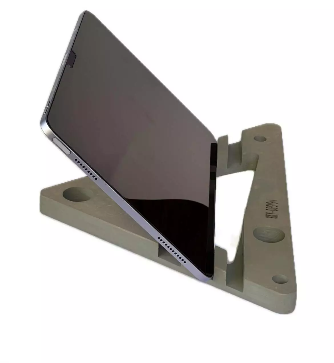 Тримач виконаний з натуральної вологостійкої фанери, товщиною 18мм. Має ергономічну форму, яка дозволить розташувати Ваш гаджет в будь-якому зручному положенні. Має декілька фіксуючих положень, дозволяє розміщувати планшет чи телефон під різним нахилом.