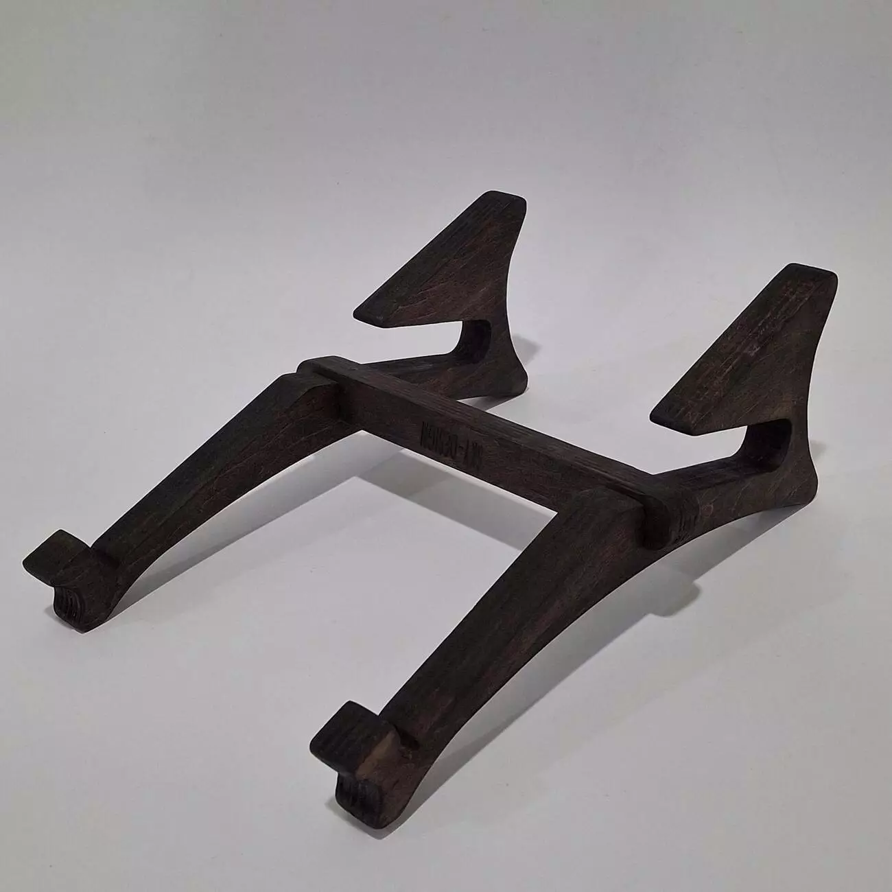Тримач виконаний з натуральної вологостійкої фанери, товщиною 18мм. Має ергономічну форму, яка дозволить розташувати Ваш гаджет в будь-якому зручному положенні. Тримач потрібен для зручності роботи, також створює пространство між ноутбуком на поверхнею для кращого охолодження.