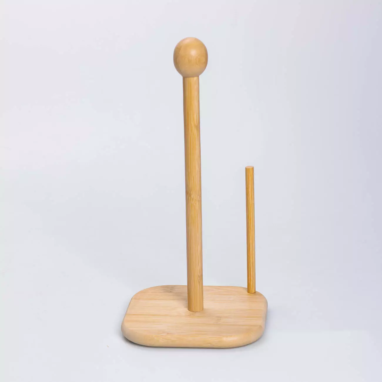 Дерев’яний тримач для паперових рушників стане практичним аксесуаром для кухні чи обідньої зони. Конструкція передбачає квадратну основу, яка забезпечує стійкість виробу та дозволяє розмістити один рулон рушників у вертикальному положенні. Поруч розташована додаткова планка, що допомагає легко відривати потрібну кількість паперу.