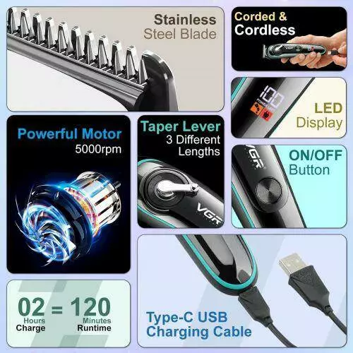 Тример VGR V-075 ідеально підходить для стрижки волосся, бороди та