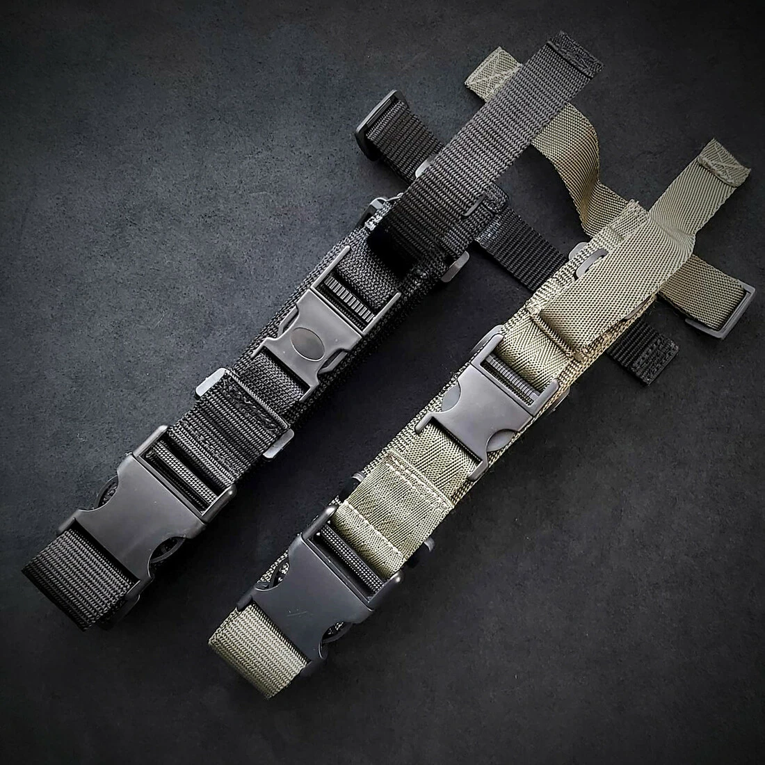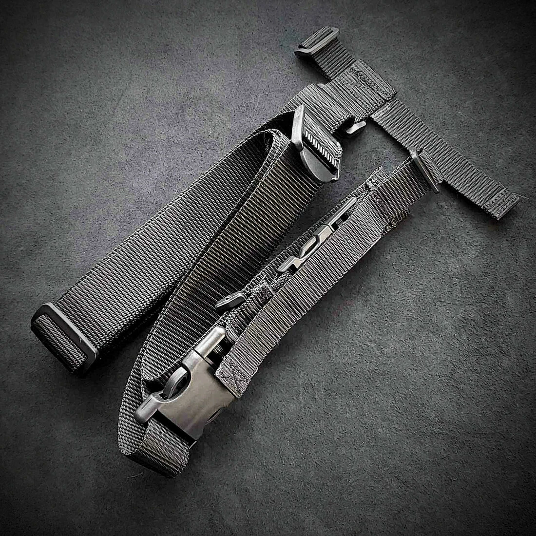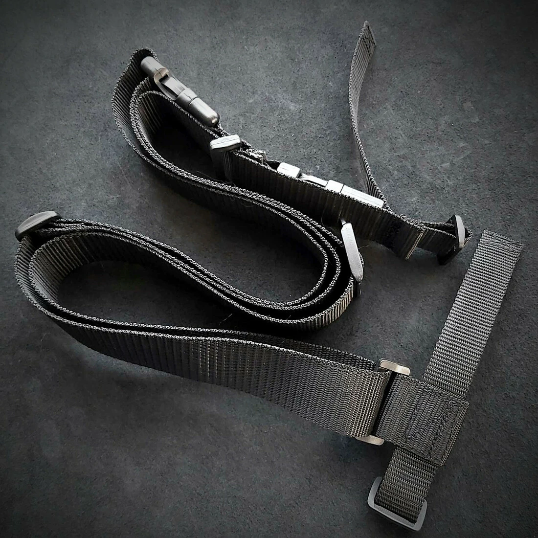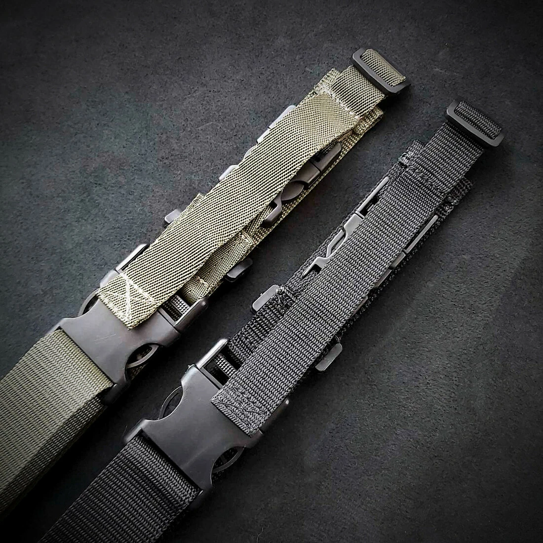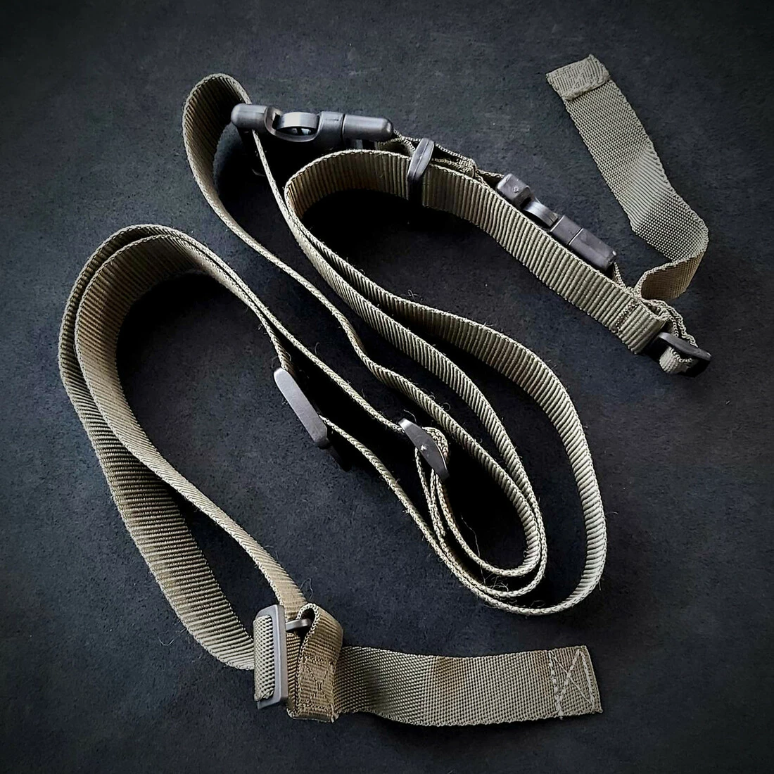 Триточковий ремінь виконаний із щільної стропи (чорний/олива).