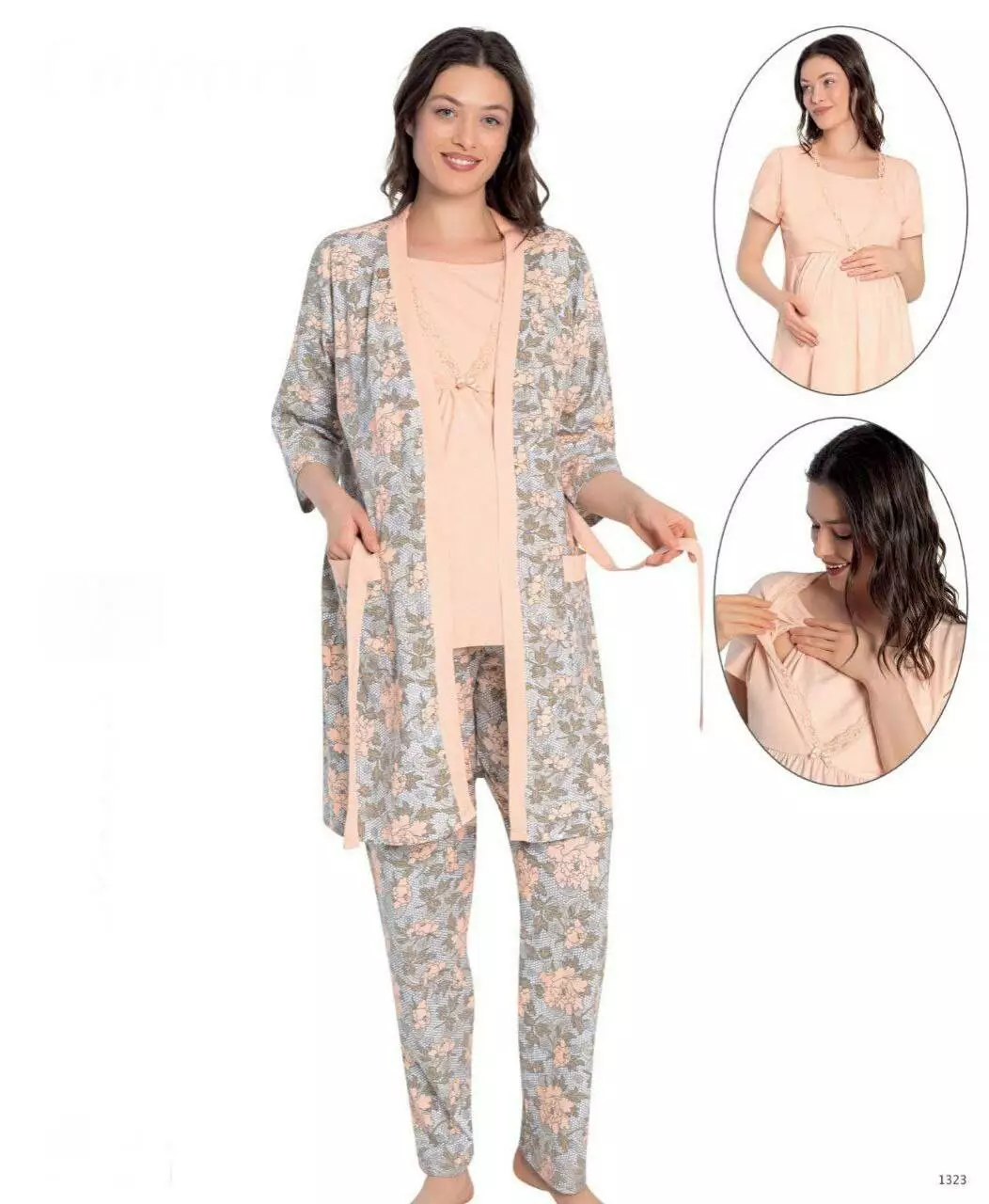 Комплект для майбутніх мам і годування- комфорт і стиль в одному комплекті. У набір входить футболка,штани та халатик на поясі. Натуральна бавовна з ніжним квітковим принтом дарує шкірі приємні відчуття та не викликає подразнень. Футболка має зручний крій для періоду вагітності й після пологів,забезпечуючи свободу рухів і простий доступ для годування. Ідеальний варіант для домашнього відпочинку,пологового будинку або подарунка майбутній мамі.