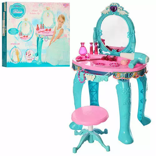 Трюмо LM90013 стільчик, дзеркало, фен, аксесуари, муз., світло, бат., кор., 71-55-8,5 см.