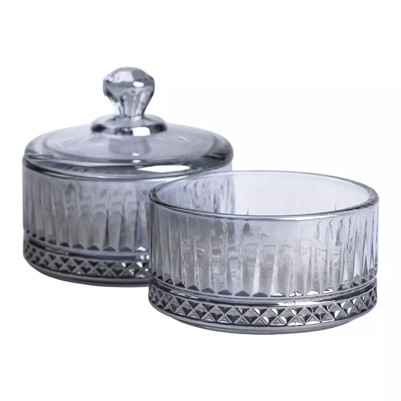 діаметр 10 см. Виготовлена з прозорого скла з ребристою текстурою,