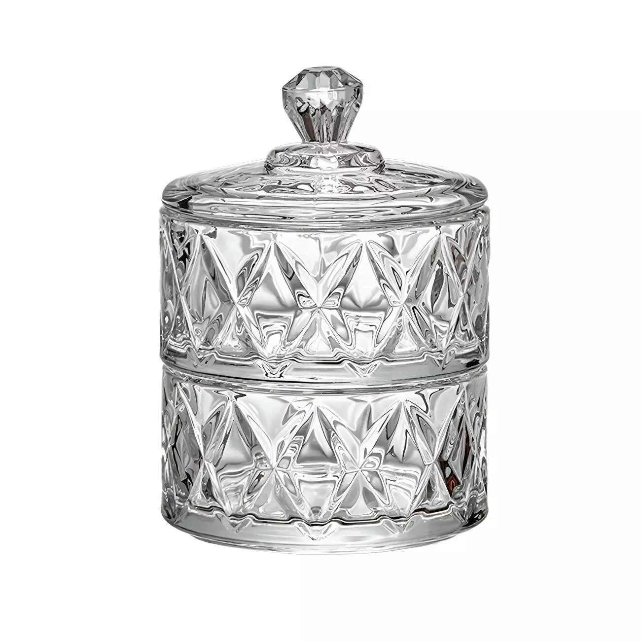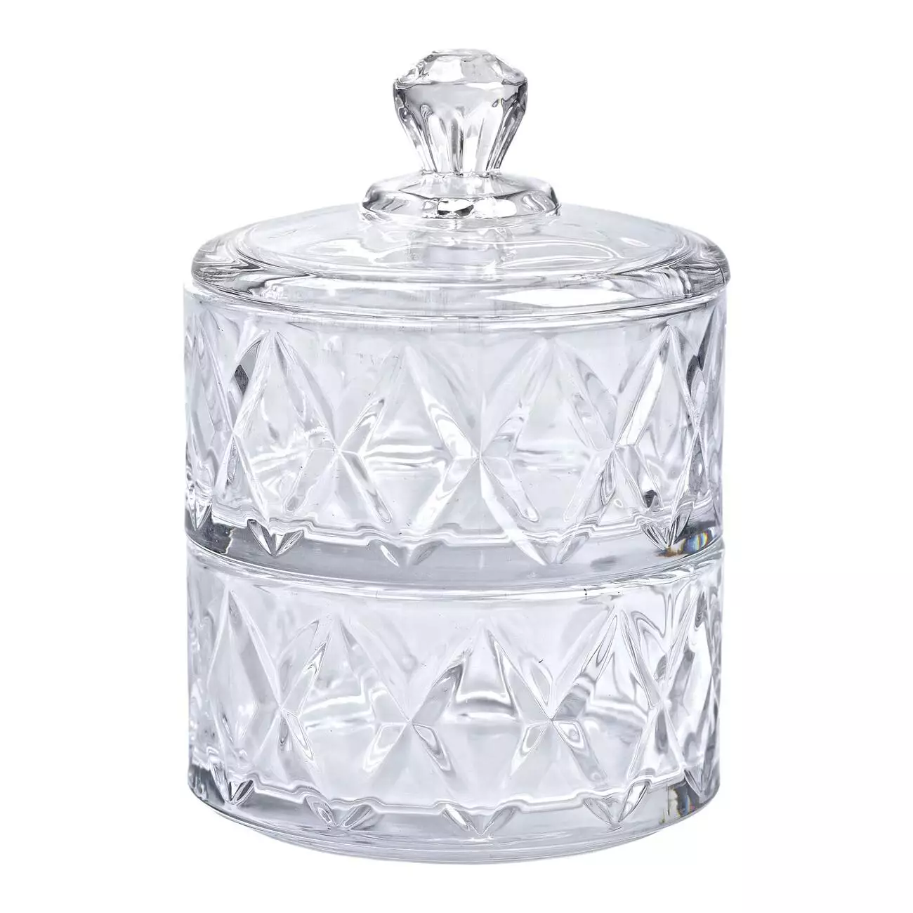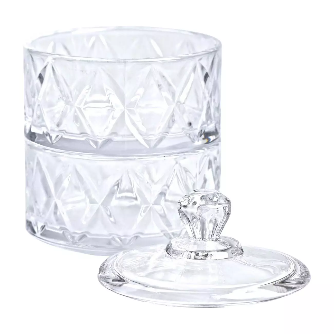 Цукерниця дворівнева зі скляною кришкою під кришталь, прозорий
