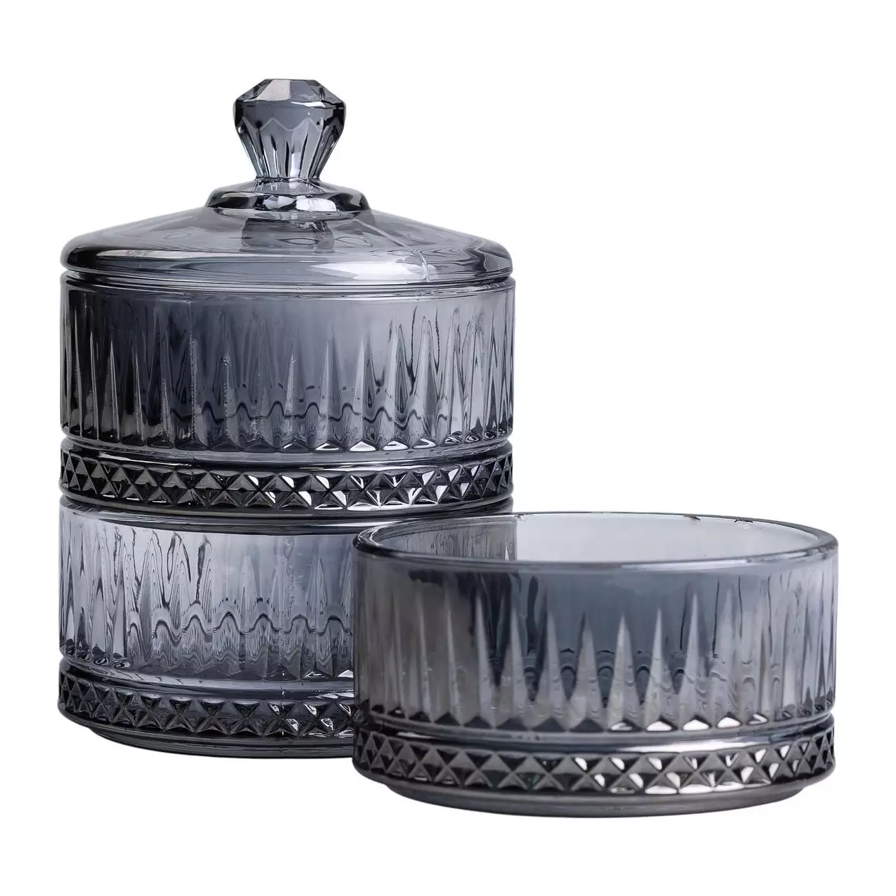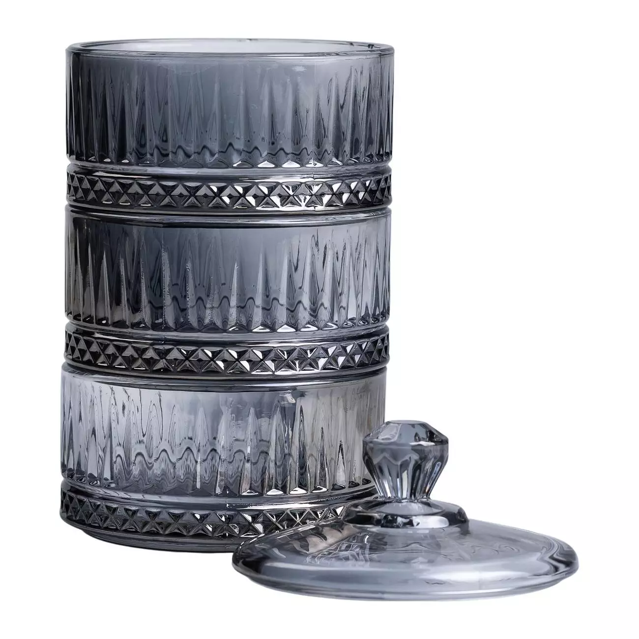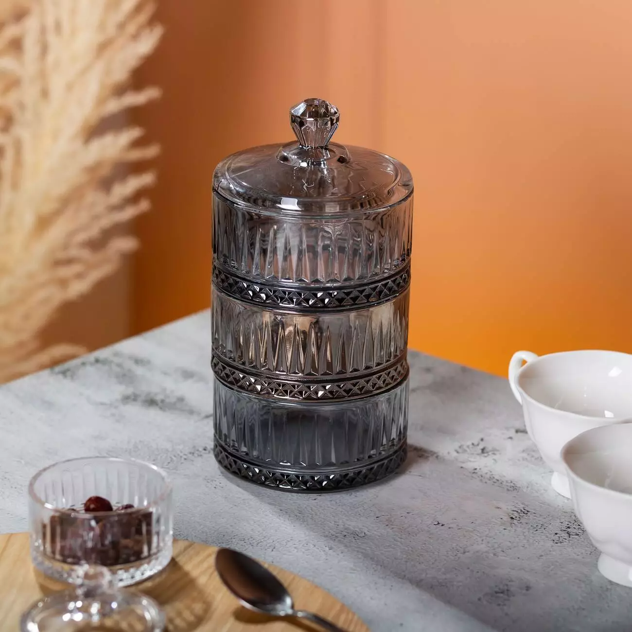 Кришка щільно прилягає до верхнього рівня, забезпечуючи захист вмісту від пилу та сторонніх запахів. Завдяки вертикальному компонуванню цукерниця займає мінімум місця на столі, залишаючись місткою. Гладка внутрішня поверхня полегшує догляд та очищення.