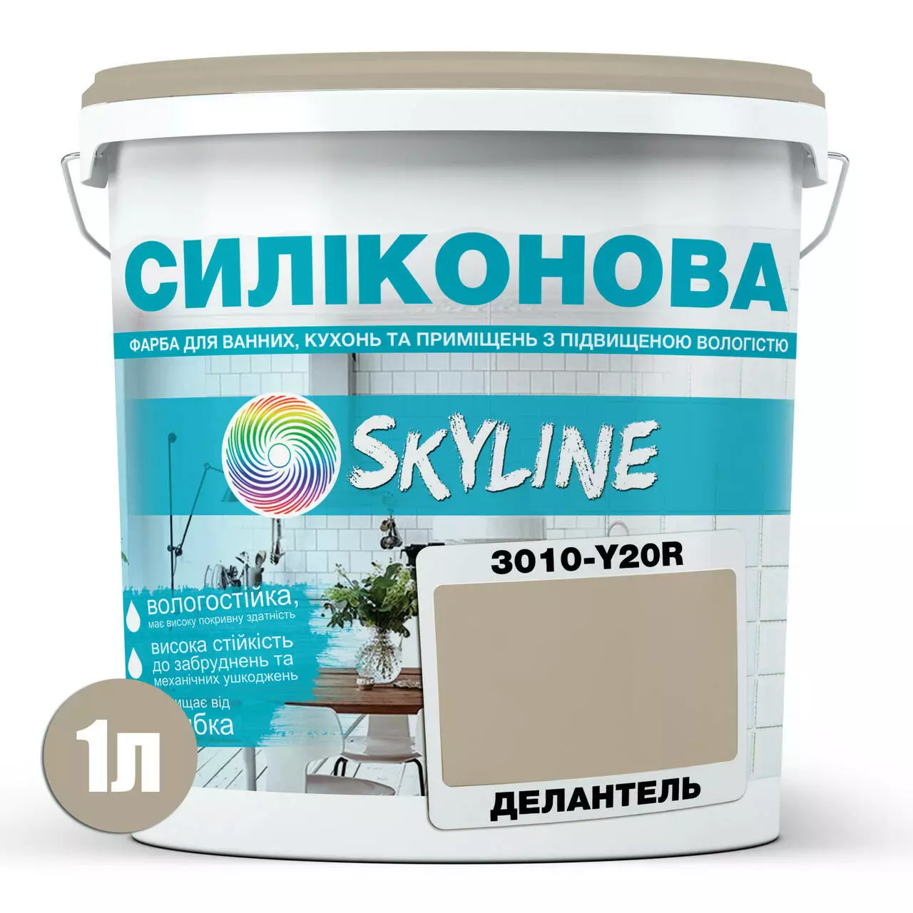 Цветная Краска СИЛИКОНОВАЯ Skyline для влажных помещений 3010-Y20R Делантель 1л