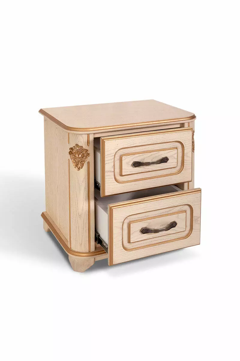 Дерев’яна приліжкова тумба з висувними шухлядами у білому кольорі. Виготовлена з масиву натурального дерева ясена Дерево прикрашене патиною Дві висувні шухляди Шухляди на телескопічних напрямних Металеві меблеві ручки Кольори: білий, слонова кістка Ш: 500 мм Г: 490 мм В: 490 мм