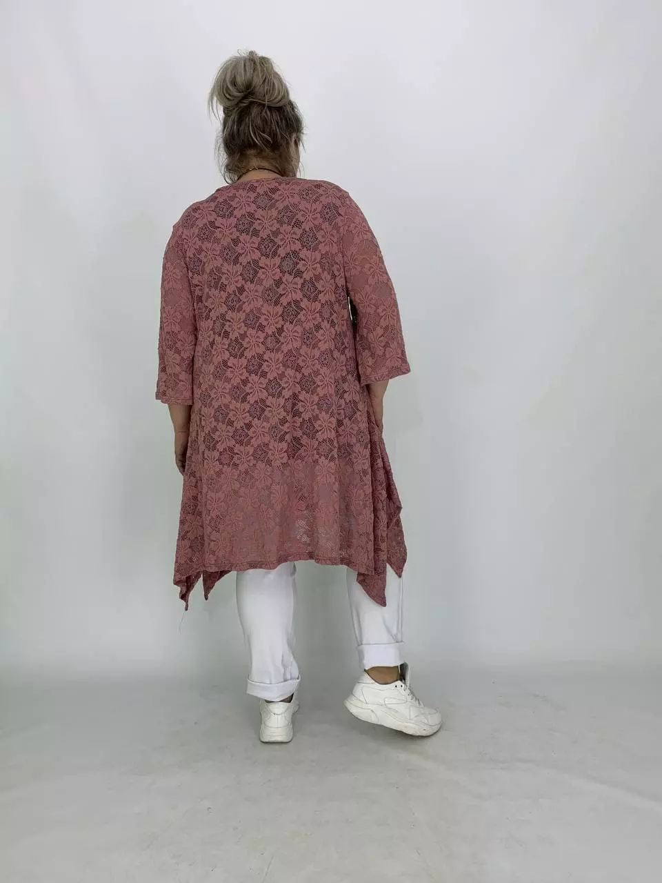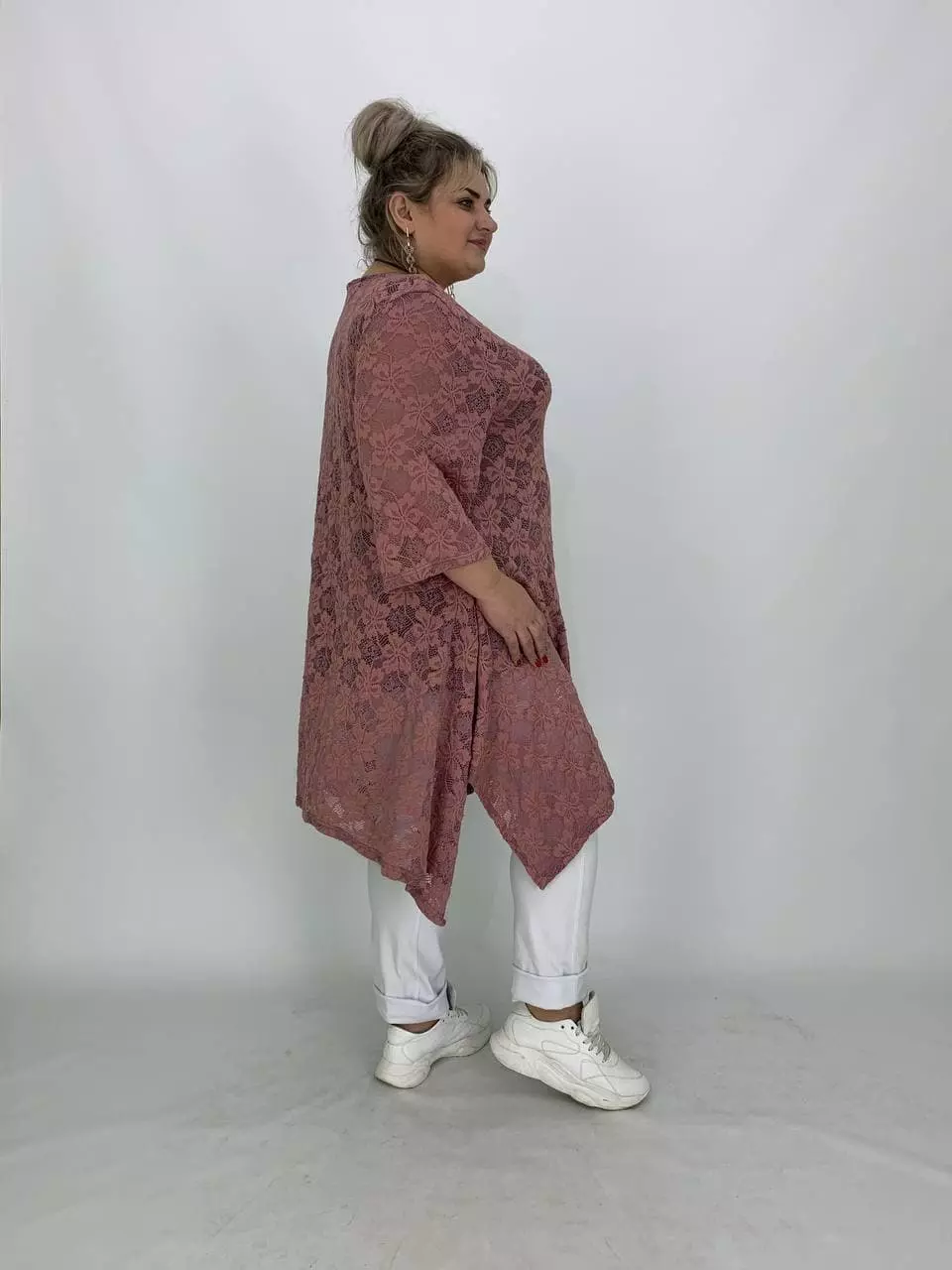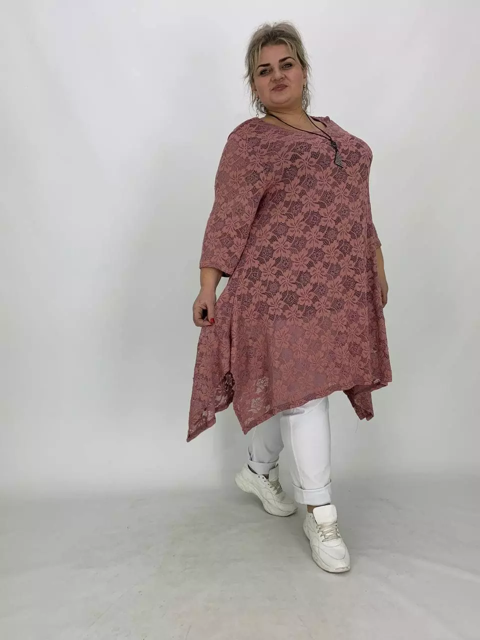 Тканина: масло - ​​70% поліестер, 20% віскоза, 10% еластан і гофре - 100% поліестер. Майка чорного або темно-синього кольору. Туніка+майка. ТУНІКА із гофрованої сітки з вибитим орнаментом по низу. М'яка, добре тягнеться, має форму. Силует вільний з широкими подовженими боками, прикрашений мереживом по горловині. Майка подовжена з віскози, дуже м'яка та приємна до тіла. Відмінно розтягується, горловина та пройми відпрацьовані равликом. Не мнеться, не вимагає особливого догляду, під праскою гофре не розгладжується (режим-капрон). Розміри :