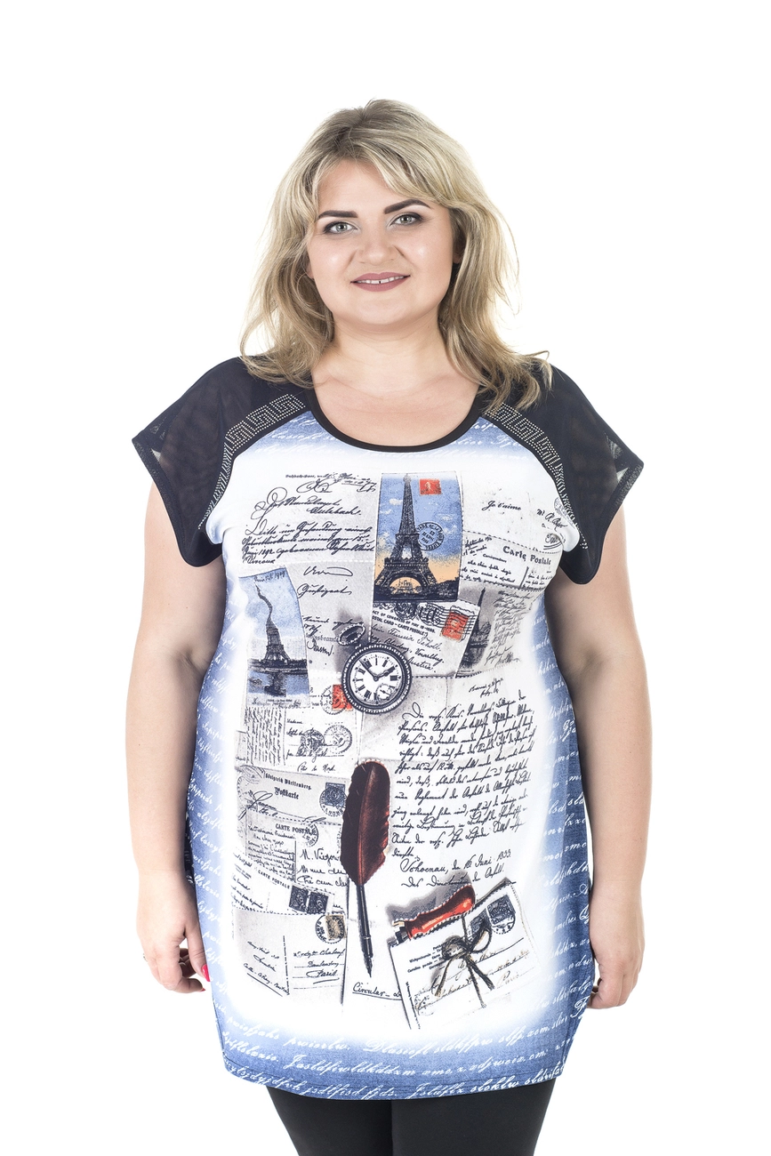 туніка напівприлеглого силуету. Рукав короткий із сітки, горловина