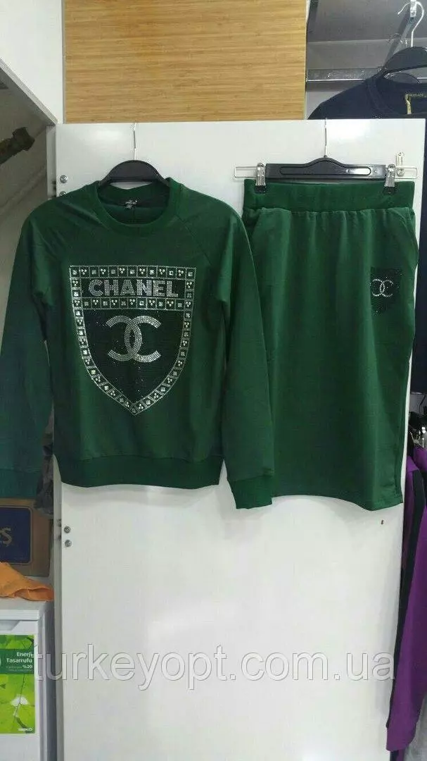 В наличии Женский костюм Chanel кофта и юбка Турция. Серый цвет с м. Зеленый с л. Замеры на вайбер