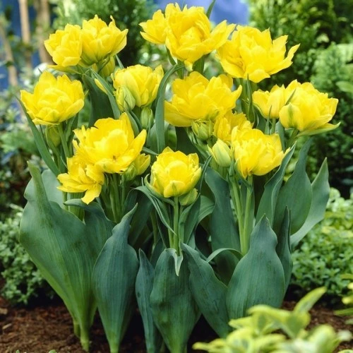 Золотисто-желтый тюльпан Монте Карло за счет пышной многолепестковой структуры похож на маленькое солнышко, что делает его желанным гостем на любой весенней клумбе. Небольшой рост сорта позволяет выращивать его не только в грунте, но и в контейнерах или горшках, украшая балконы, террасы и подоконники.