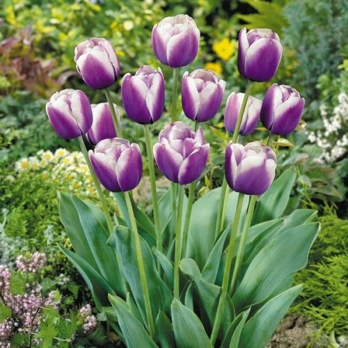 Тюльпан Atlantis (Атлантис) по праву относят к одному из самых изысканных сортов из класса Триумф, благодаря темно-сиреневому окрасу с молочным широким кантом. Эффектные цветы хороши в весенних клумбах, альпинариях, срезочных композициях.