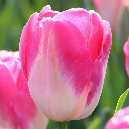 Нежный бело-розовый тюльпан Триумф Dynasty (Династия) со слегка волнистыми лепестками отлично смотрится на всех весенних клумбах, в садах, парках и городских скверах. Часто его выбирают флористы для создания изящных композиций.
