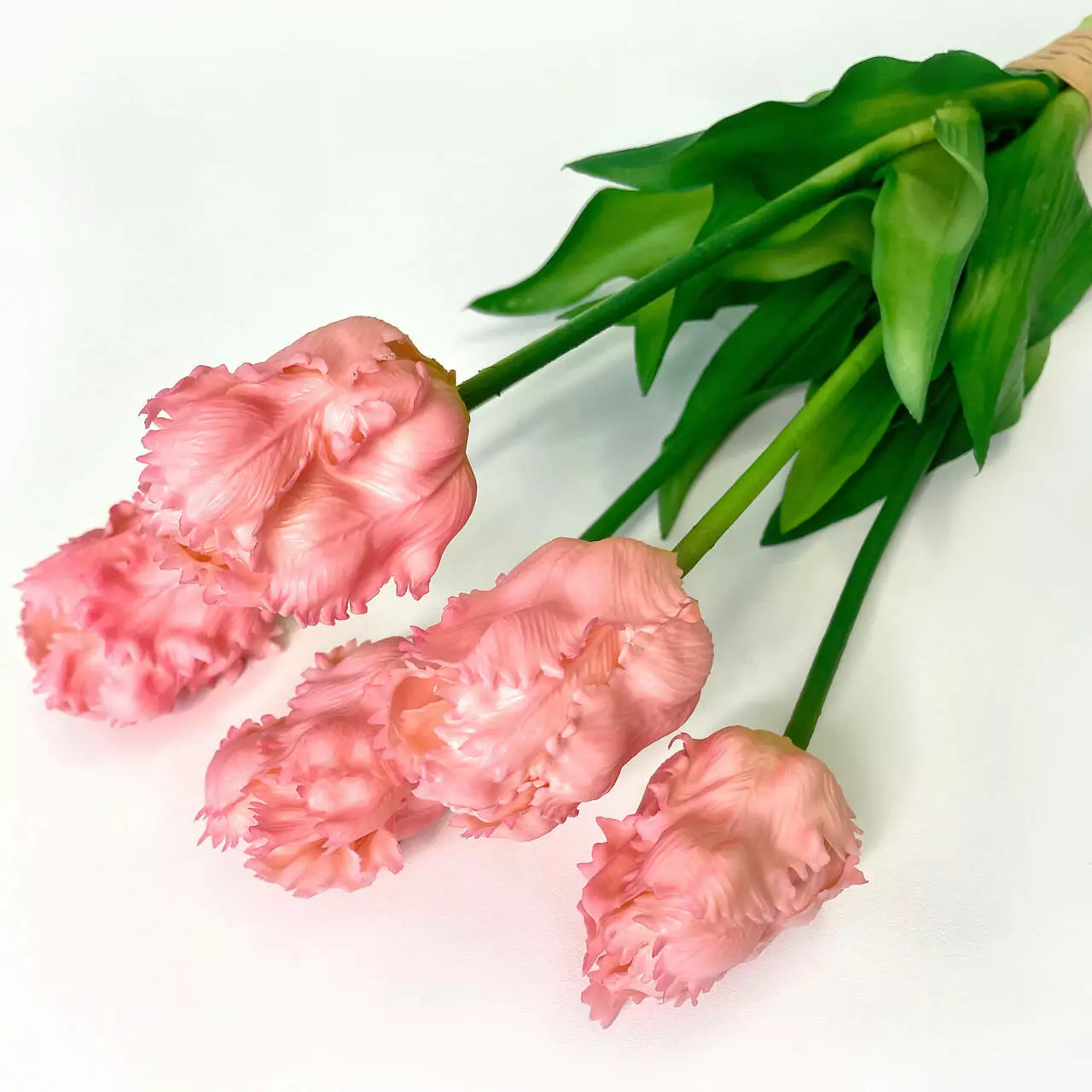 Тюльпани штучні латексні махрові букет 5 квіток світло-рожевий