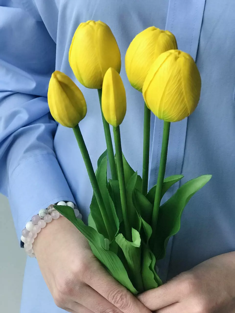 Ці тюльпани виготовлені з високоякісного латексу, що робить їх максимально реалістичними на вигляд і дотик. Гнучкі стебла дозволяють змінювати форму букета, адаптуючи його під будь-яку вазу чи квіткову композицію. Букет можна ставити у вазу з водою – і квіти виглядатимуть, як щойно зрізані!
