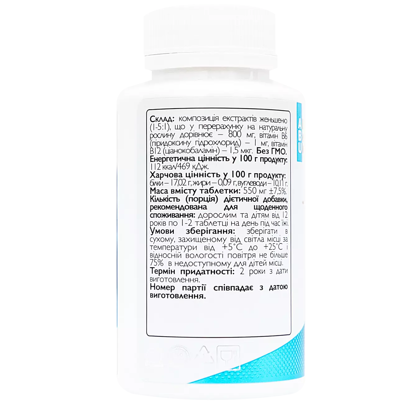 Адаптоген з екстрактом женьшеню та вітамінами групи B Ginseng ABU, 60 таблеток