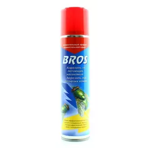 Аэрозоль от летающих насекомых BROS сочетает в себе несколько современных активных веществ эффективных там, где насекомые выработали иммунитет на применяемые до сих пор препараты, обладает эффектом молниеносного действия на насекомых (мухи, мошки, дрозофилы, комары, моль).