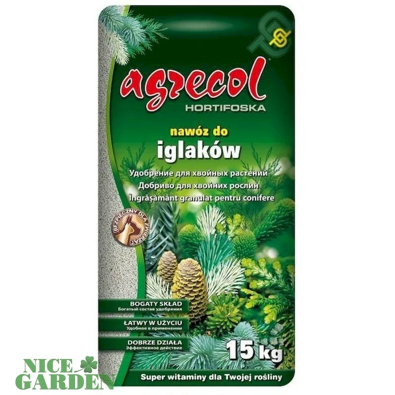 (Хортифоска Агрекол) -15 кг, это специализированное удобрение для хвойных деревьев и кустарников. Благодаря работе специалистов нам удалось получить очень эффективное многокомпонентное удобрение, обеспечивающее соответствующие условия для роста растений.