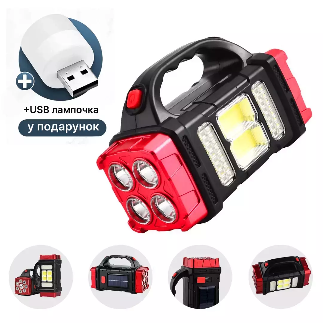 Аккумуляторный LED фонарь Hurry Bolt HB-2678 аварийный светильник с солнечной панелью + USB лампочка в подарок