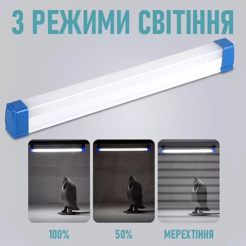 Аккумуляторный LED светильник BK-150 предлагает три режима работы, позволяя выбирать между ярким освещением для детальной работы, умеренной подсветкой для комфортного чтения и нежным светом для создания атмосферы уюта.