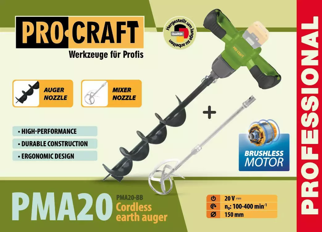 Аккумуляторный мотобур-миксер Procraft PMA20 (без акб и зп)