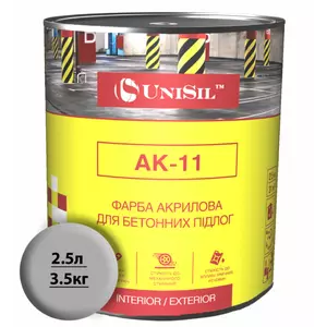 Акриловая краска для бетонных полов Unisil АК-11, Серая, 2.5л/3.5кг