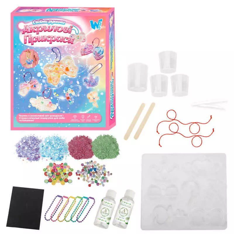 Акрилові прикраси 41029 / 68656 (96) "WToys", 2 види, епоксидний клей, активатор, силіконовий молд, прикраси, ланцюжки, в коробці
