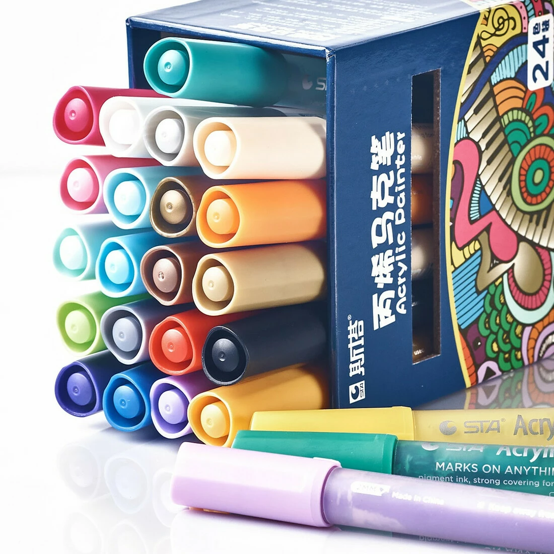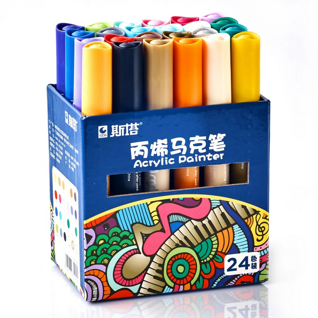 Палитра акриловых маркеров составляет 24 цветов. Цветные акриловые
