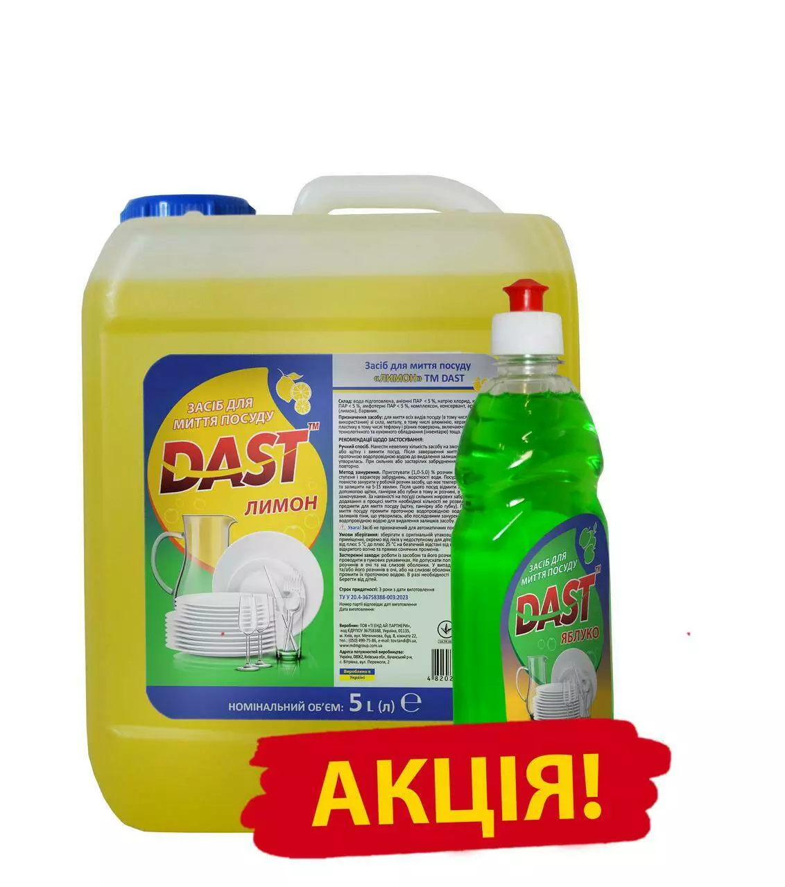 Акційний набір для сяючої чистоти кухні DAST: 5 л засобу для миття посуду з ароматом лимона у каністрі + 500 мл засобу для миття посуду з ароматом яблука — практичне та економне рішення для щоденного миття посуду. Обидва засоби швидко розчиняють жир, ефективно видаляють залишки їжі та навіть найскладніші забруднення, залишаючи посуд бездоганно чистим і наповнюючи кухню приємними фруктовими ароматами.