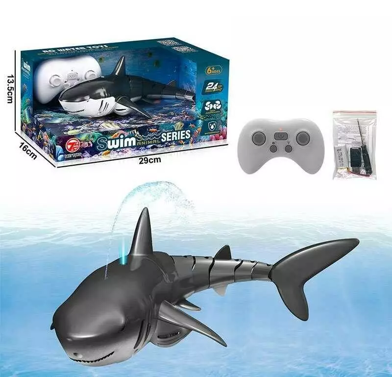 Акула на радіокеруванні 18003-53 (24/2) акумулятор 3.7 V, пульт 2.4 GHz, підсвічування, плаває у воді, в коробці