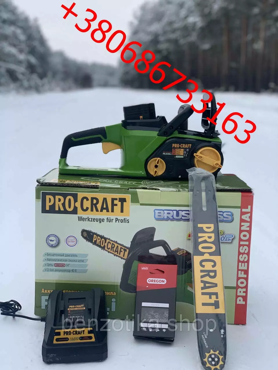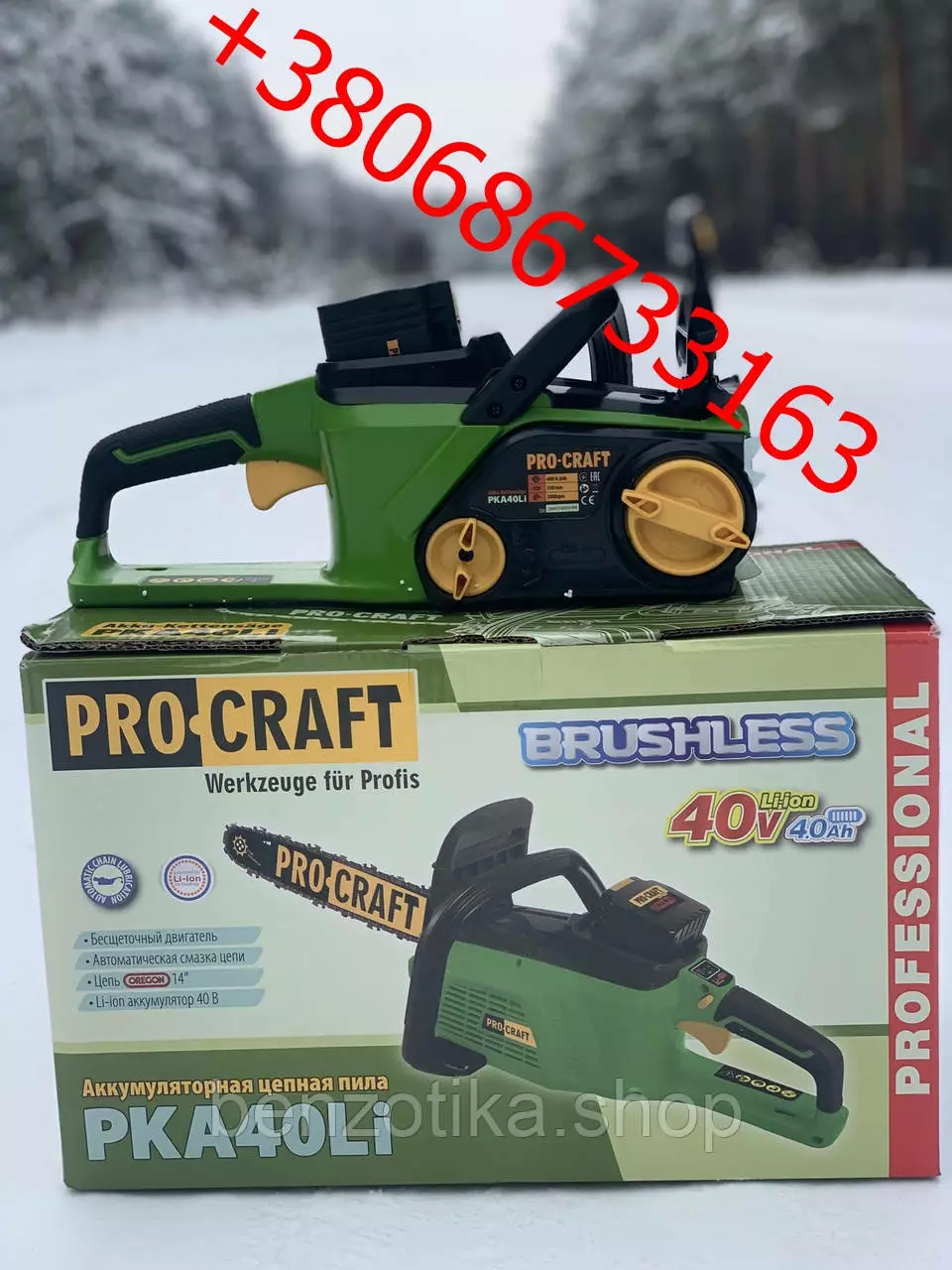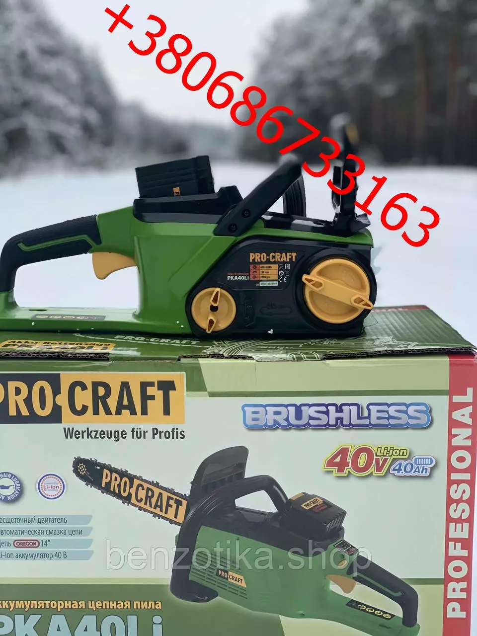 Аккумуляторная цепная пила Procraft PKA40Li 40V 4Ah безщеточный