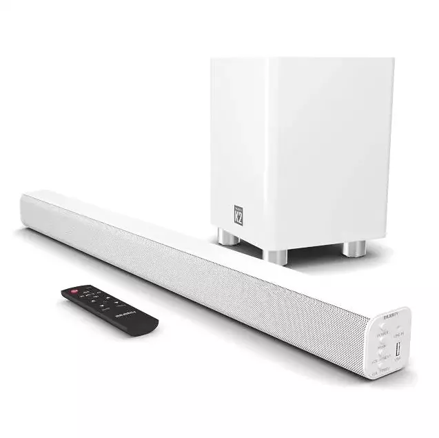 Саундбар K2 – это тонкая звуковая панель с беспроводным сабвуфером, идеально подходящая под телевизор или на стол. Используйте кнопки на боковой стороне звуковой панели или пульте дистанционного управления, чтобы регулировать громкость, настраивать эквалайзер, источник и многое другое. Идеальная звуковая панель для телевизора или компьютера, которая наполнит вашу комнату и погрузит вас в звук высокой четкости в вашем доме.