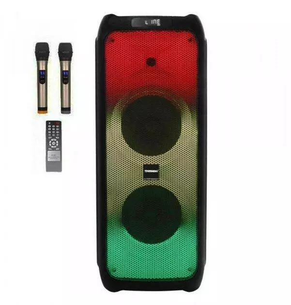 радіомікрофони, LED світломузика. Акустична система має ручку –
