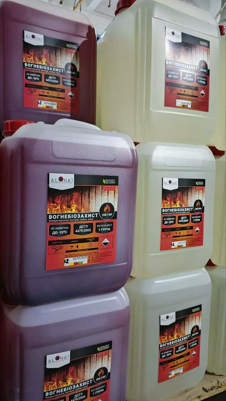 Унікальна запатентована розробка, вогнебіозахист АЛАНА це препарат останнього покоління. Кислотна основа дає можливість глибоко проникати в структуру дерева і образовует там активний вогнебіозахисний шар. Оброблена деревини на 60% зменшує поглинання вологи, що дає істотну до 2х разів економію при подальшій обробці дерева лаком або фар6оюроків